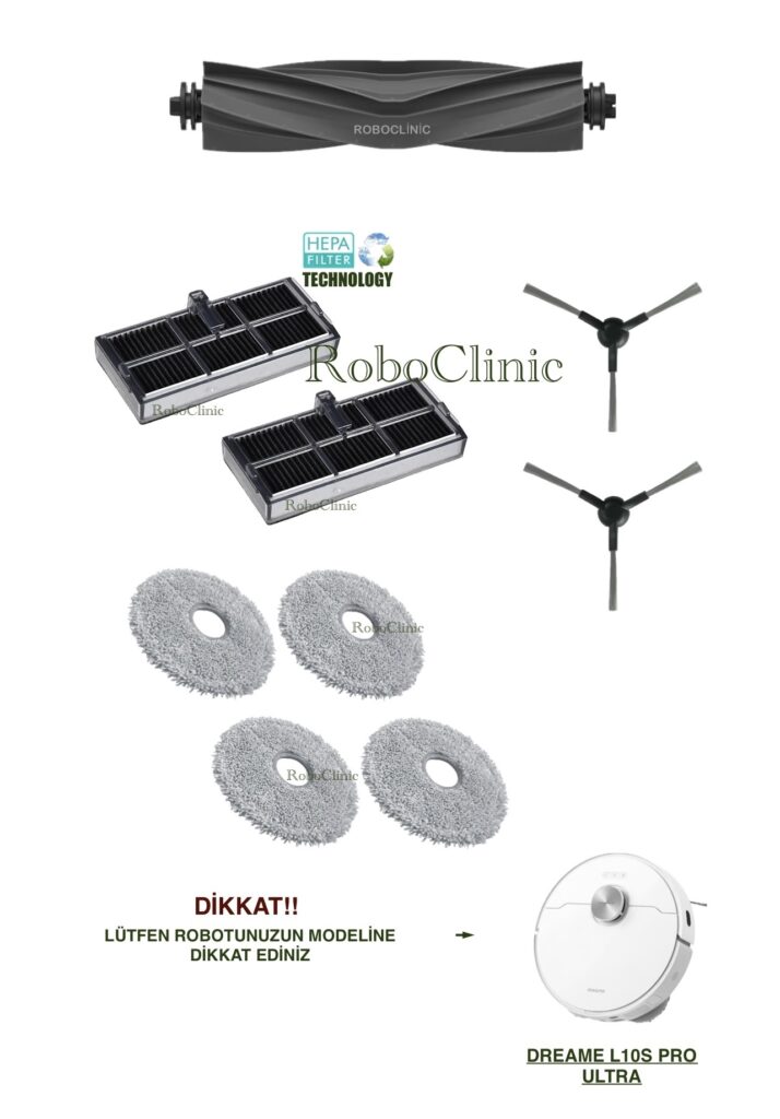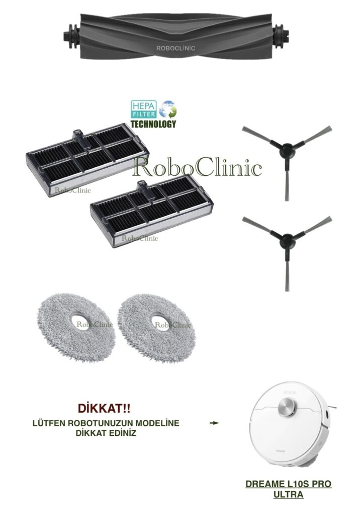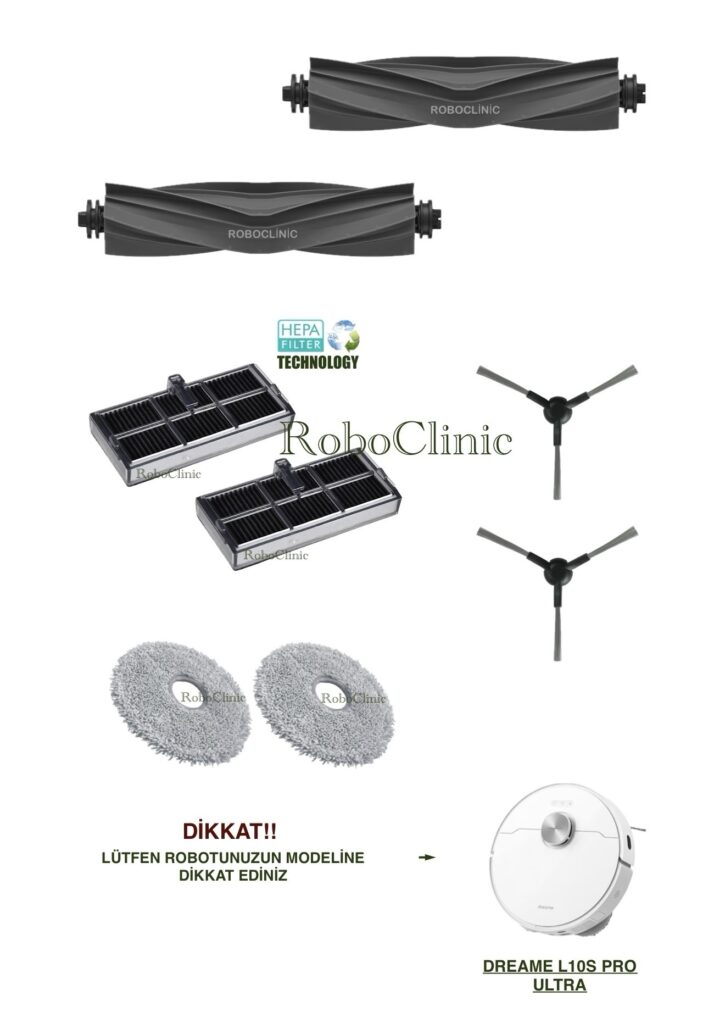 Evinizin yardımcısı robot süpürgeniz için ihtiyaç duyduğunuz tüm yedek parçaları ve aksesuarları tek bir çatı altında sunuyoruz. RoboClinic mağazasında, özenle kategorize edilmiş ürünler arasında aradığınızı kolayca bulabilir, cihazınızın performansını ilk günkü gibi koruyabilirsiniz. İster ana fırça değişimi yapın, ister filtre ya da mop yenileyin; tüm parçalarımız 1. kalite, orijinal ve ithal distribütör ürünleridir.