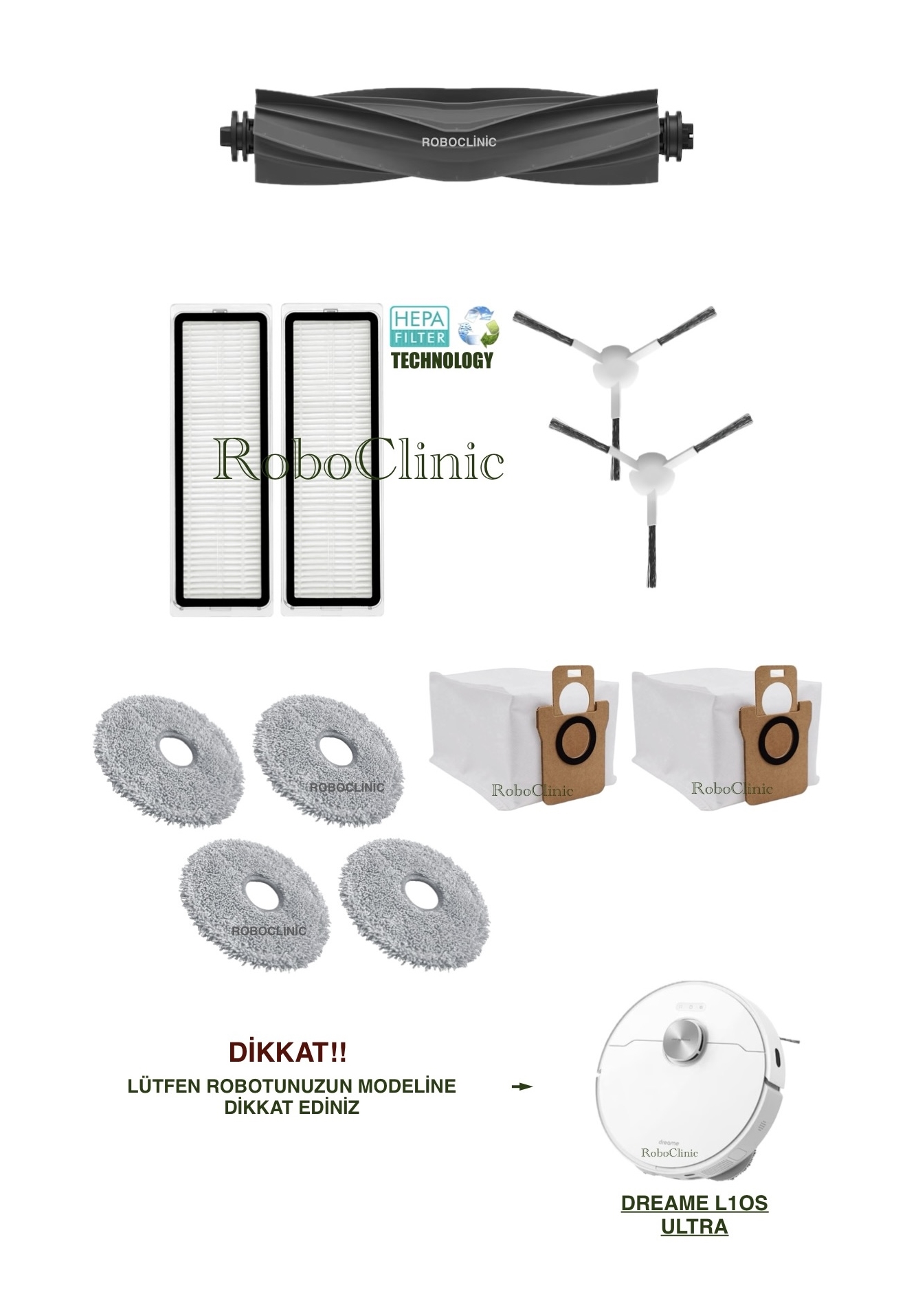 | DİKKAT! | ŞİPARİŞ VERMEDEN ÖNCE ROBOTUNUZUN MODELİNİ KONTROL EDİNİZ. |