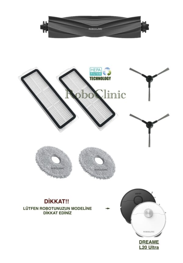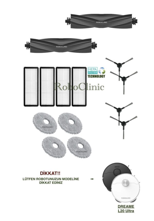 Dreame L20 Ultra Yedek Ana Fırça, Yan Fırça, HEPA Filtre – 11 Parça