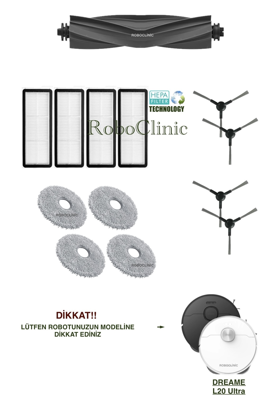 | DİKKAT! | ŞİPARİŞ VERMEDEN ÖNCE ROBOTUNUZUN MODELİNİ KONTROL EDİNİZ. |