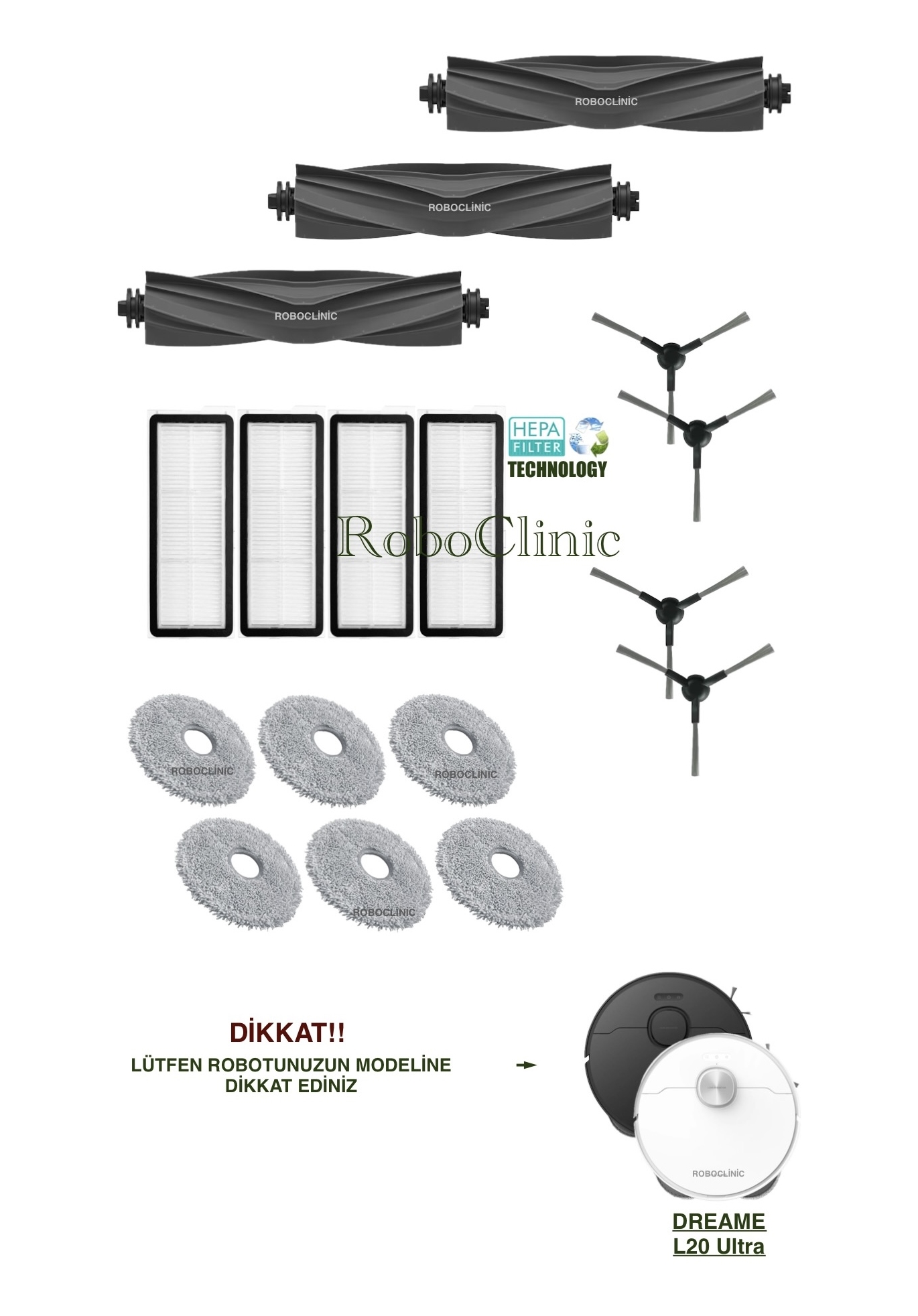 | DİKKAT! | ŞİPARİŞ VERMEDEN ÖNCE ROBOTUNUZUN MODELİNİ KONTROL EDİNİZ. |
