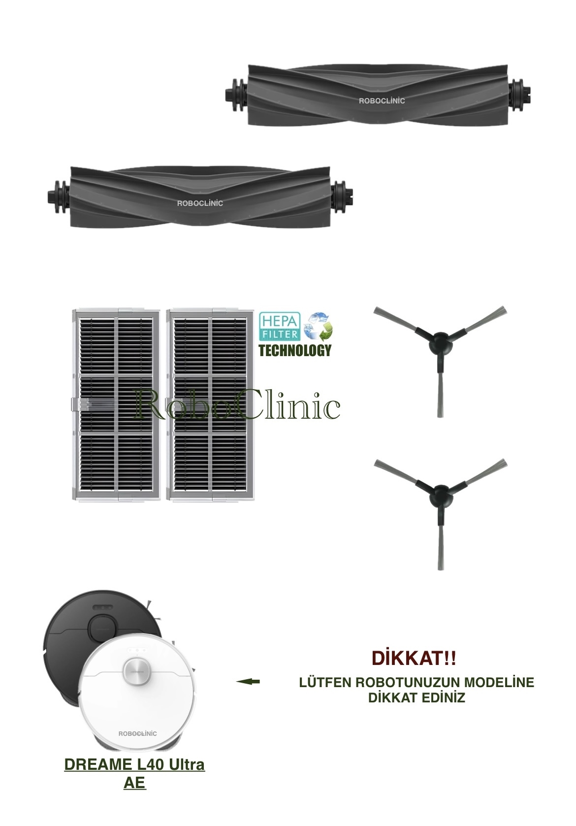 | DİKKAT! | ŞİPARİŞ VERMEDEN ÖNCE ROBOTUNUZUN MODELİNİ KONTROL EDİNİZ. |