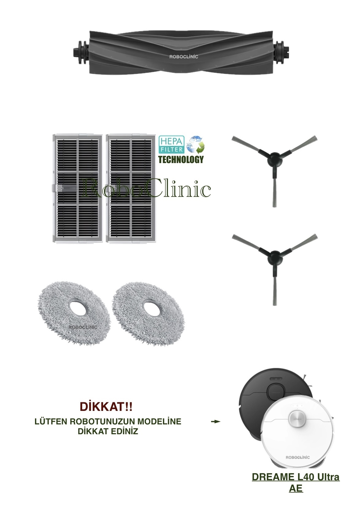 Dreame L40 Ultra AE Yedek Ana Fırça, Yan Fırça, HEPA Filtre, Mop – 7 Parça
