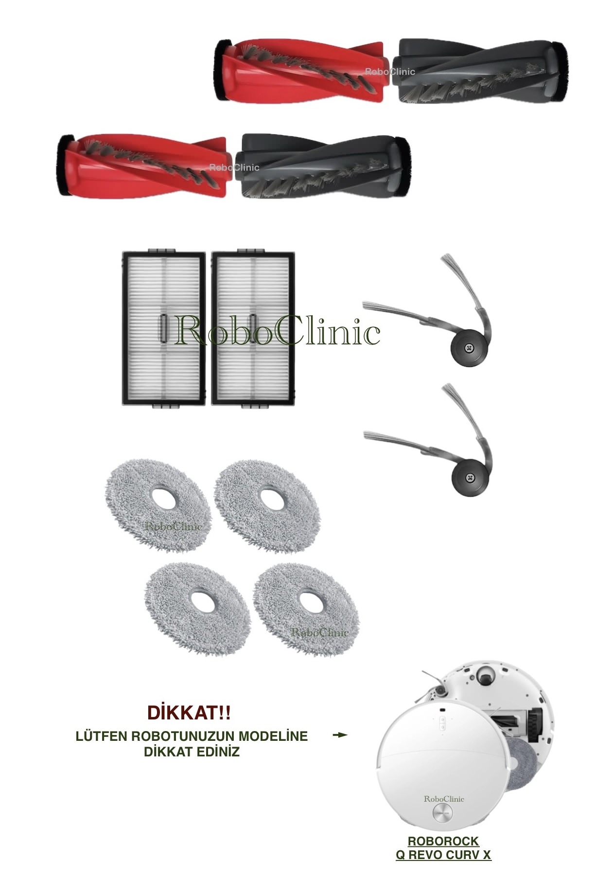 Roborock Qrevo CurvX Yedek Ana Fırça, Yan Fırça, HEPA Filtre, Mop – 12 Parça