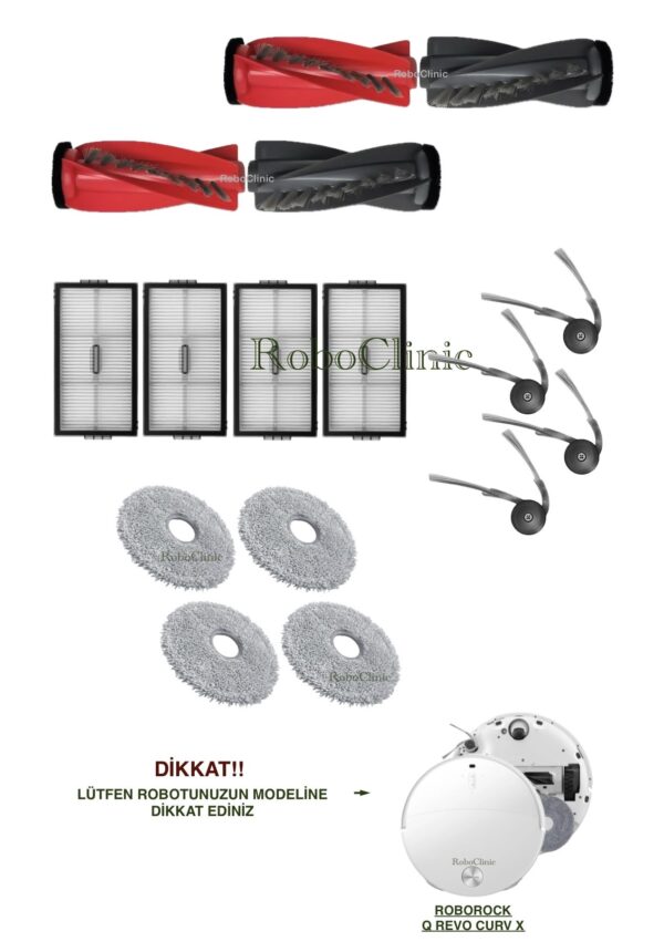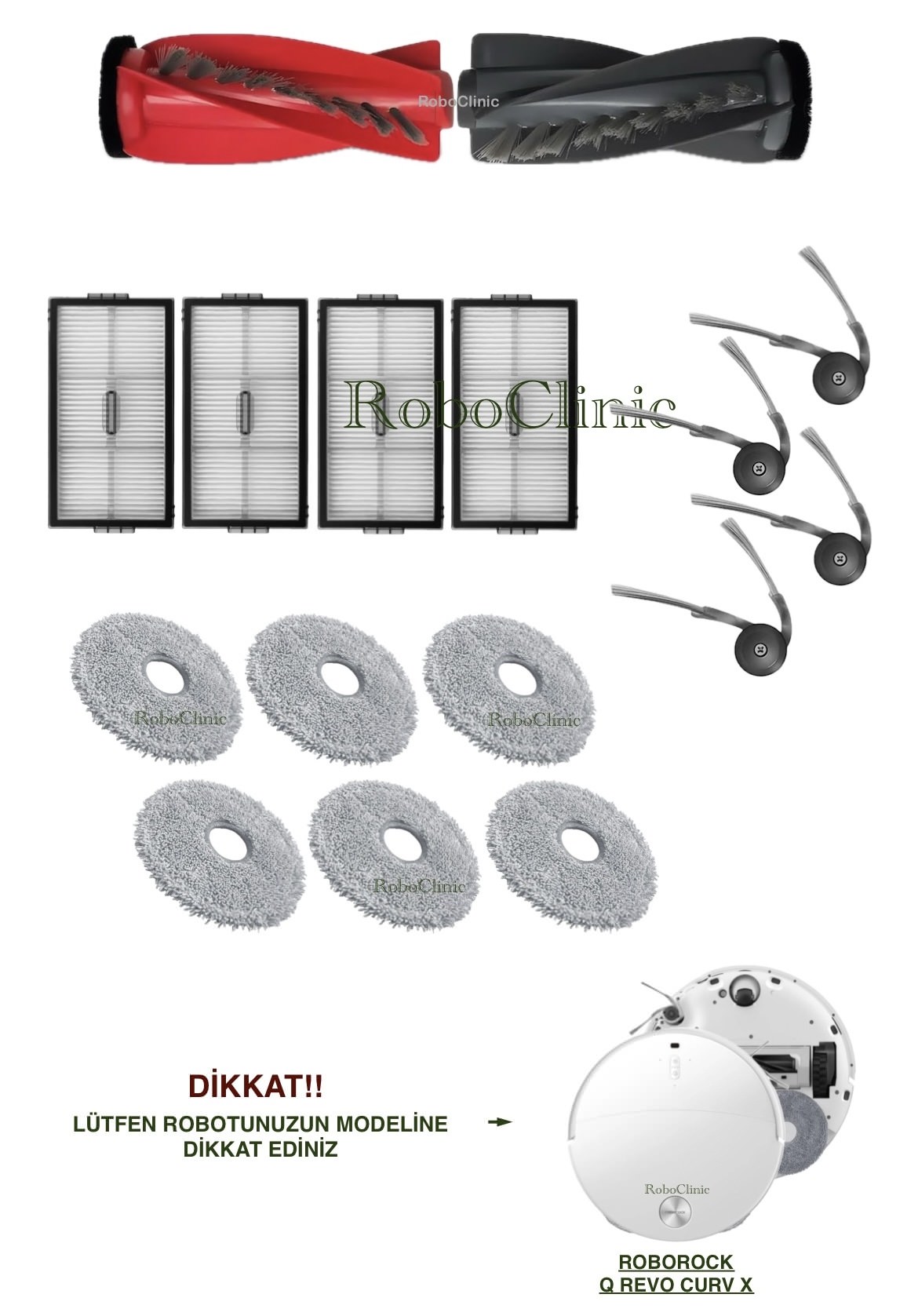 Roborock Qrevo CurvX Yedek Ana Fırça, Yan Fırça, HEPA Filtre, Mop – 16 Parça