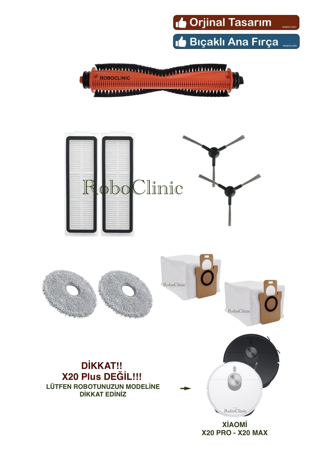 Xiaomi Robot Vacuum X20 Max BıçaklıYedek Ana Fırça, Yan Fırça, HEPA Filtre, Mop – 15 Parça